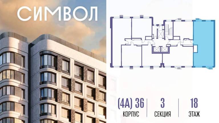 Продается 3-комнатная квартира от застройщика: общая площадь 87.80 м, жилая 42.40 м, кухня 22.50 м, 18-й этаж, жилой квартал «Гордость», корпус 36 (секция 2) .