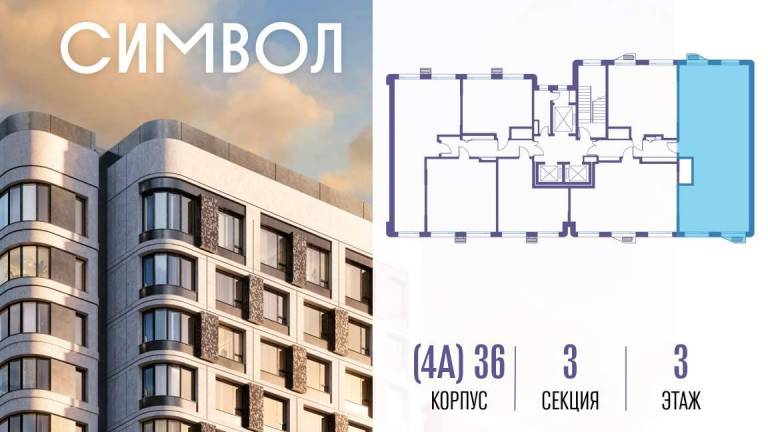 Продается 3-комнатная квартира от застройщика: общая площадь 103.10 м, жилая 48.50 м, кухня 27.40 м, 3-й этаж, жилой квартал «Гордость», корпус 36 (секция 2) .