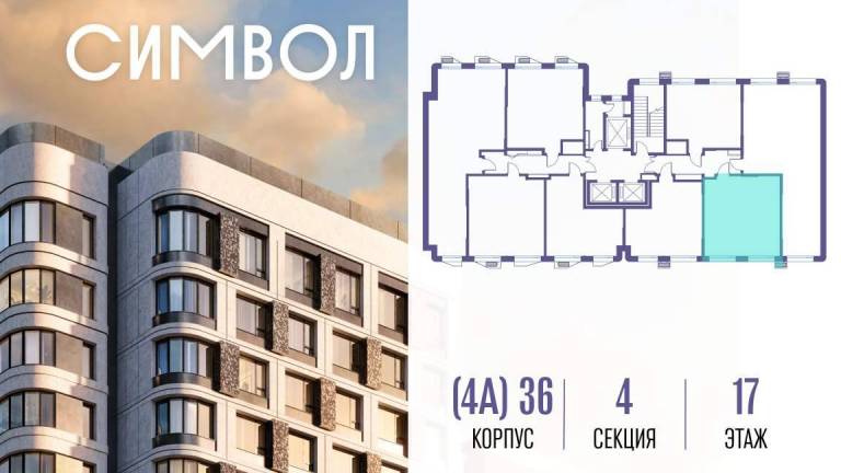 Продаётся 1-комнатная квартира от застройщика: общая площадь 38.80 м, жилая 14.90 м, кухня 16.00 м, 32-й этаж, жилой квартал «Событие-6», корпус 2 (секция 5...