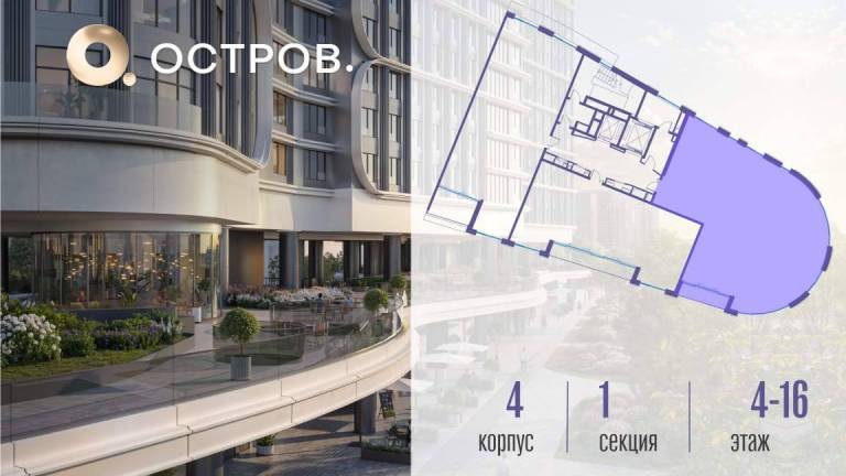 Продаётся 4-комн. квартира от застройщика: общая площадь 148.70 м, жилая 50.40 м, кухня 43.10 м, 12-й этаж, жилой квартал «Остров 7», корпус 3 (секция 1) .