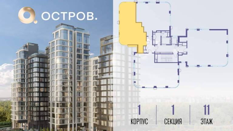 Продаётся 4-комн. квартира от застройщика: общая площадь 123.50 м, жилая 50.30 м, кухня 37.20 м, 15-й этаж, жилой квартал «Остров 12», корпус 1 (секция 2) .