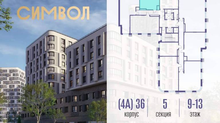 Продаётся 4-комнатная квартира от застройщика: общая площадь 109.40 м, жилая 53.30 м, кухня 23.70 м, 21-й этаж, жилой квартал «Событие-6», корпус 2 (секция 1...