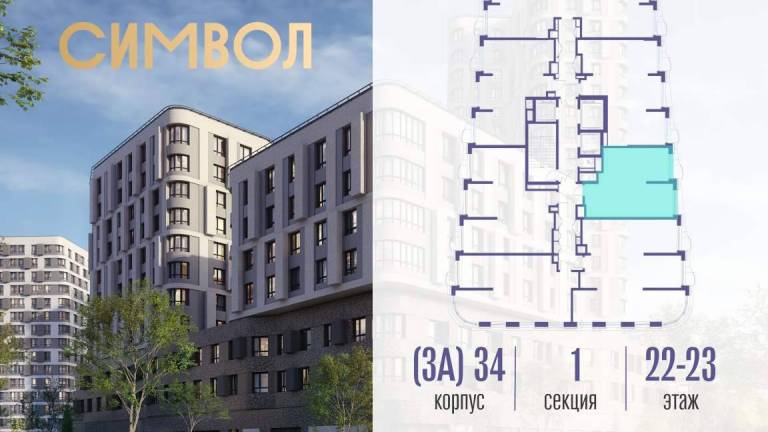 Продается 2-комнатная квартира от застройщика: общая площадь 66.20 м, жилая 33.50 м, кухня 17.30 м, 23-й этаж, жилой квартал «Вдохновение», корпус 34 (секция...