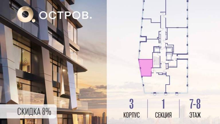 Продаётся 3-комн. квартира от застройщика: общая площадь 128.20 м, жилая 36.20 м, кухня 35.80 м, 17-й этаж, жилой квартал «Остров 7», корпус 2 (секция 2) .