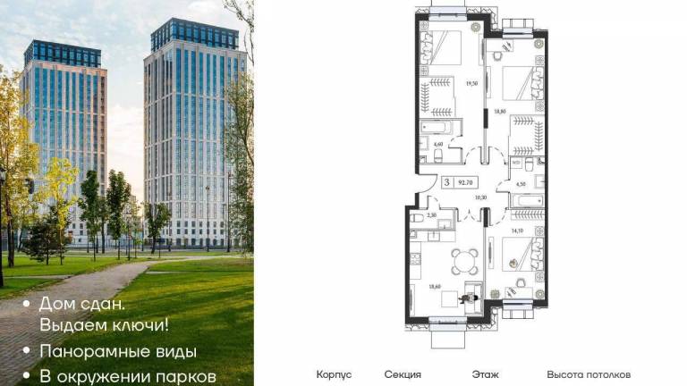 19-й этаж из 242023 годМонолитЧерновая отделкаПотолки 3,15 м