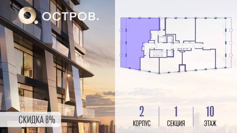 Продаётся 2-комн. квартира от застройщика: общая площадь 79.10 м, жилая 28.40 м, кухня 24.10 м, 9-й этаж, жилой квартал «Остров 12», корпус 6 (секция 1) . Срок...