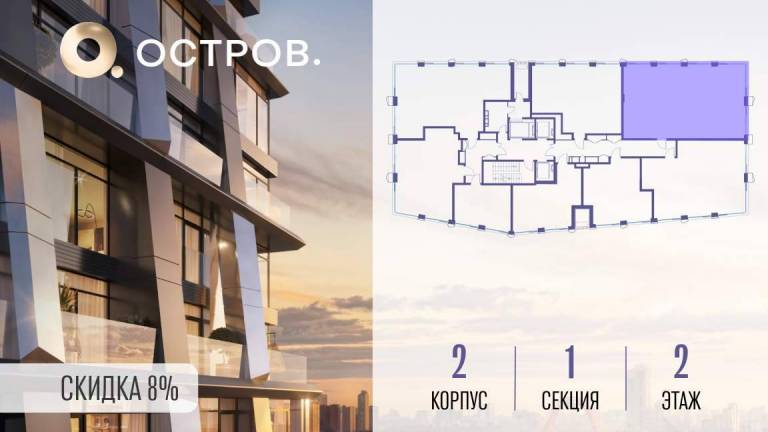 Продаётся 2-комн. квартира от застройщика: общая площадь 86.00 м, жилая 34.90 м, кухня 28.30 м, 8-й этаж, жилой квартал «Остров 12», корпус 1 (секция 1) . Срок...