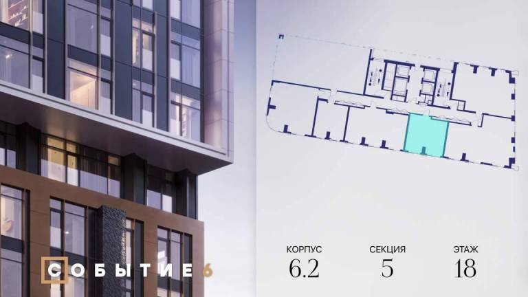 Продаётся 3-комнатная квартира от застройщика: общая площадь 77.20 м, жилая 41.70 м, кухня 18.10 м, 18-й этаж, жилой квартал «Событие-6», корпус 2 (секция 5...