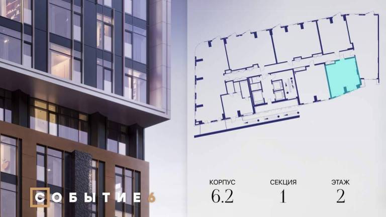 Продаётся 2-комнатная квартира от застройщика: общая площадь 61.40 м, жилая 31.60 м, кухня 16.90 м, 8-й этаж, жилой квартал «Событие-6», корпус 2 (секция 3...
