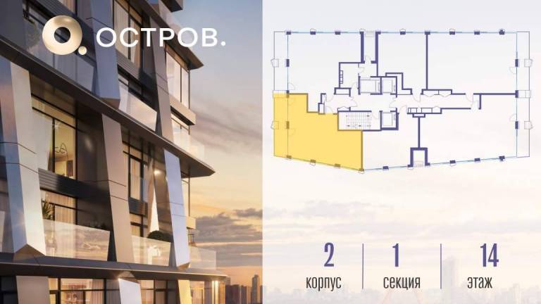 Фильтры1Продаётся 2-комн. квартира от застройщика: общая площадь 71.30 м, жилая 28.80 м, кухня 23.90 м, 14-й этаж, жилой квартал «Остров 12», корпус 2 (секция 1) .
