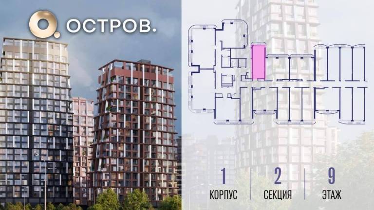 Продаётся квартира от застройщика: общая площадь 28.00 м, жилая 14.40 м, кухня 5.00 м, 9-й этаж, жилой квартал «Остров 14», корпус 1 (секция 2) . Срок сдачи: 2...