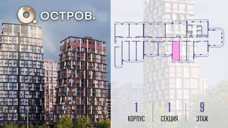Продаётся квартира от застройщика: общая площадь 28.00 м, жилая 14.40 м, кухня 5.00 м, 9-й этаж, жилой квартал «Остров 14», корпус 1 (секция 1) . Срок сдачи: 2...