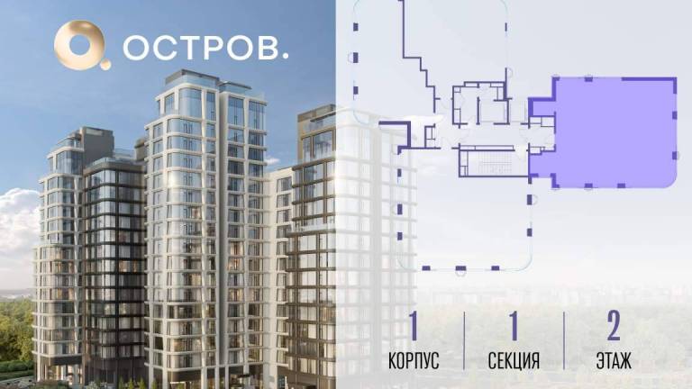 Продаётся 4-комн. квартира от застройщика: общая площадь 123.50 м, жилая 50.30 м, кухня 37.20 м, 6-й этаж, жилой квартал «Остров 12», корпус 1 (секция 2) .