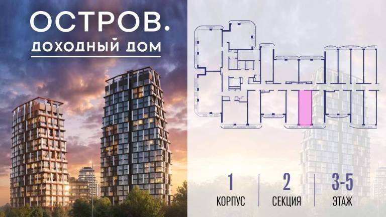 Продаётся 3-комн. квартира от застройщика: общая площадь 121.50 м, жилая 42.10 м, кухня 25.30 м, 10-й этаж, жилой квартал «Остров 12», корпус 1 (секция 1) .
