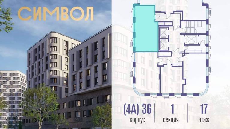 Продается 2-комнатная квартира от застройщика: общая площадь 63.50 м, жилая 29.40 м, кухня 17.00 м, 9-й этаж, жилой квартал «Гордость», корпус 36 (секция 3) .