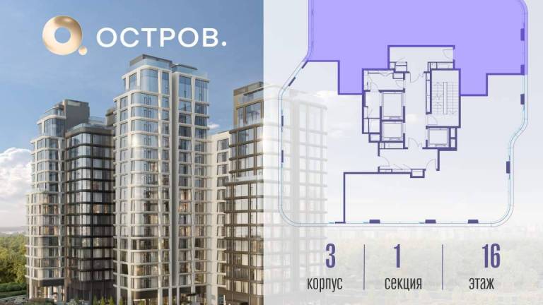 Продаётся 4-комн. квартира от застройщика: общая площадь 135.70 м, жилая 57.80 м, кухня 38.90 м, 16-й этаж, жилой квартал «Остров 12», корпус 3 (секция 1) .