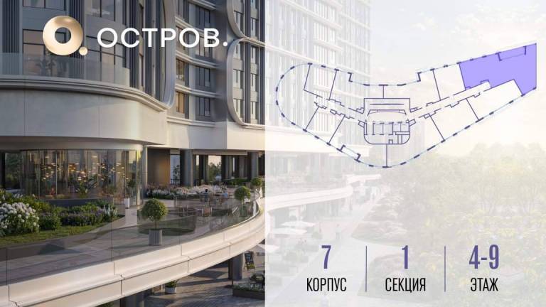 Продаётся 4-комн. квартира от застройщика: общая площадь 128.20 м, жилая 48.40 м, кухня 44.70 м, 16-й этаж, жилой квартал «Остров 7», корпус 4 (секция 2) .
