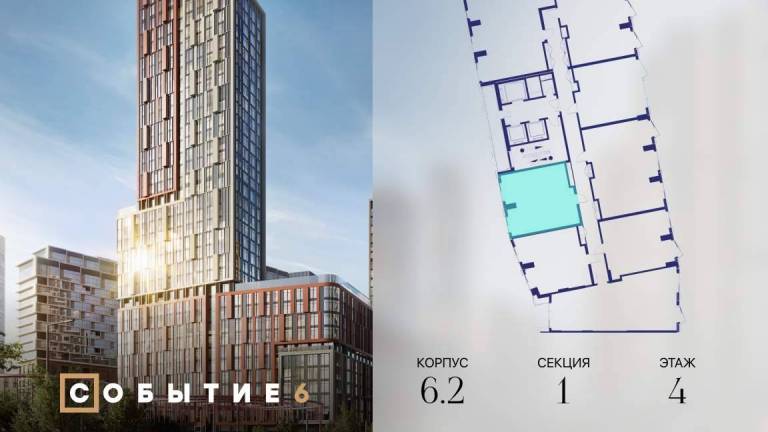 Продаётся 2-комнатная квартира от застройщика: общая площадь 62.10 м, жилая 33.00 м, кухня 17.80 м, 37-й этаж, жилой квартал «Событие-6», корпус 2 (секция 5...