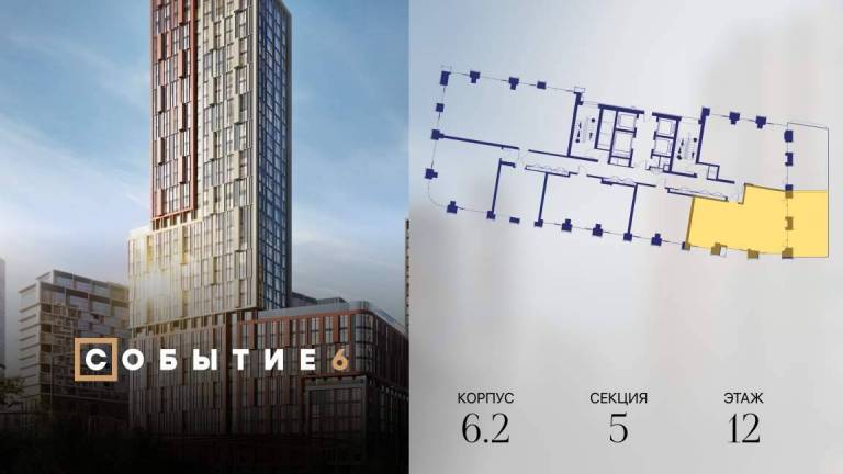Продаётся 1-комнатная квартира от застройщика: общая площадь 38.80 м, жилая 14.90 м, кухня 16.00 м, 26-й этаж, жилой квартал «Событие-6», корпус 2 (секция 5...
