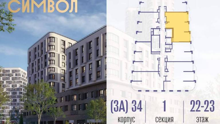 Продается 2-комнатная квартира от застройщика: общая площадь 69.80 м, жилая 36.60 м, кухня 18.20 м, 23-й этаж, жилой квартал «Вдохновение», корпус 34 (секция...