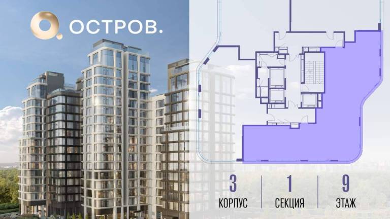 Продаётся 4-комн. квартира от застройщика: общая площадь 123.50 м, жилая 50.30 м, кухня 37.20 м, 6-й этаж, жилой квартал «Остров 12», корпус 1 (секция 2) .