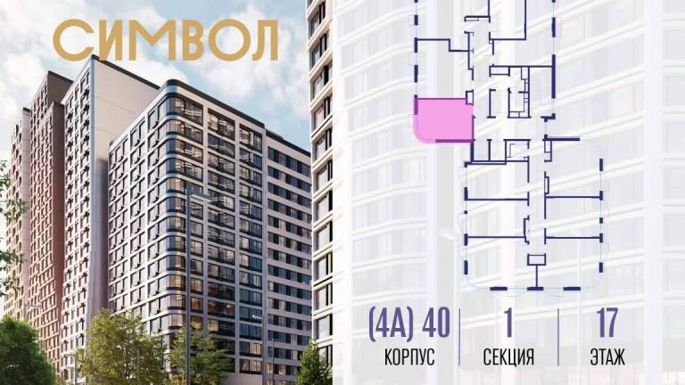Продается квартира-студия от застройщика: общая площадь 28.00 м, жилая 15.60 м, кухня 5.00 м, 17-й этаж, жилой квартал «Гордость», корпус 40 (секция 1) . Срок...