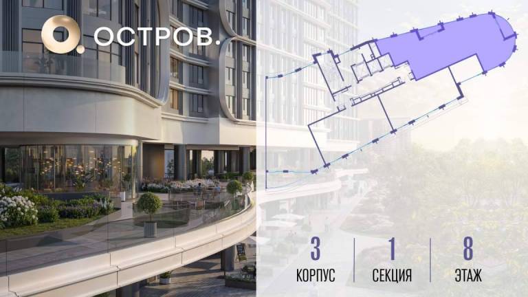 Продаётся 3-комн. квартира от застройщика: общая площадь 119.40 м, жилая 40.90 м, кухня 38.80 м, 18-й этаж, жилой квартал «Остров 7», корпус 6 (секция 2) .