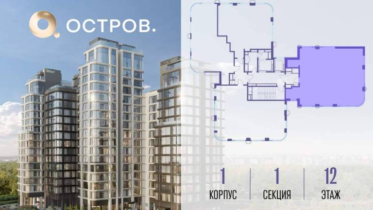Продаётся 4-комн. квартира от застройщика: общая площадь 123.50 м, жилая 50.30 м, кухня 37.20 м, 6-й этаж, жилой квартал «Остров 12», корпус 1 (секция 2) .