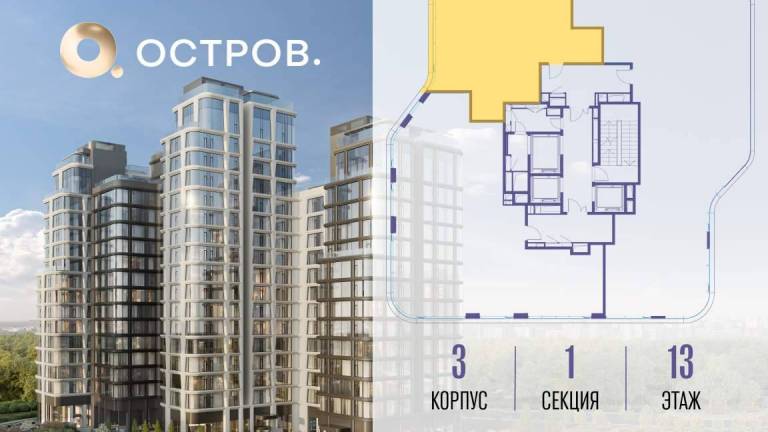 Фильтры1Продаётся 2-комн. квартира от застройщика: общая площадь 85.60 м, жилая 34.10 м, кухня 31.10 м, 13-й этаж, жилой квартал «Остров 12», корпус 3 (секция 1) .