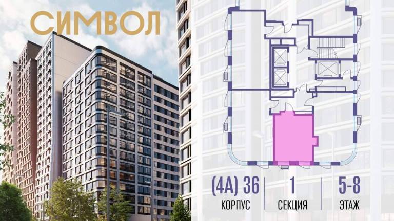 Продается 1-комнатная квартира от застройщика: общая площадь 38.70 м, жилая 14.00 м, кухня 15.10 м, 8-й этаж, жилой квартал «Гордость», корпус 36 (секция 4) .