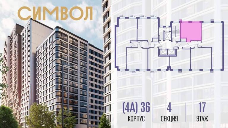 Продается 1-комнатная квартира от застройщика: общая площадь 45.40 м, жилая 17.10 м, кухня 19.30 м, 17-й этаж, жилой квартал «Гордость», корпус 36 (секция 4) .