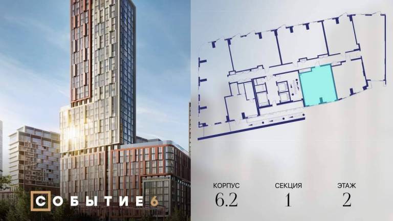 Продаётся 2-комнатная квартира от застройщика: общая площадь 61.40 м, жилая 31.60 м, кухня 16.90 м, 8-й этаж, жилой квартал «Событие-6», корпус 2 (секция 3...