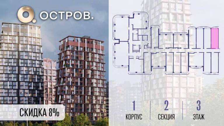 Фильтры1Продаётся квартира от застройщика: общая площадь 28.00 м, жилая 14.40 м, кухня 5.00 м, 3-й этаж, жилой квартал «Остров 14», корпус 1 (секция 2) . Срок сдачи: 2...