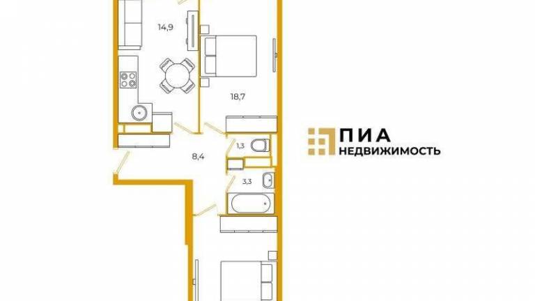 ОН 22758. Новый уютный ЖК между д вумя станциями метро. Просторная евро-двушка с большой застекленной лоджией. Спальня 11 кв. метров, и кухня-гостинная 20 кв.