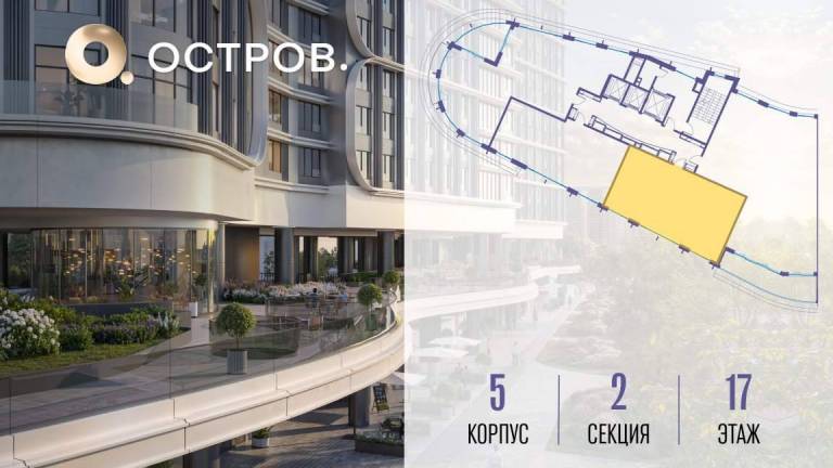 Продаётся 1-комн. квартира от застройщика: общая площадь 50.00 м, жилая 17.50 м, кухня 23.30 м, 19-й этаж, жилой квартал «Остров 7», корпус 7 (секция 2) . Срок...