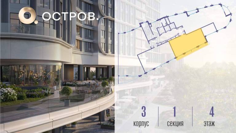 Продаётся 4-комн. квартира от застройщика: общая площадь 134.90 м, жилая 50.10 м, кухня 41.70 м, 16-й этаж, жилой квартал «Остров 7», корпус 5 (секция 2) .