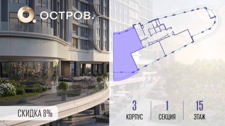 Фильтры1Продаётся квартира от застройщика: общая площадь 177.00 м, жилая 53.80 м, кухня 60.50 м, 15-й этаж, жилой квартал «Остров 7», корпус 3 (секция 1) . Срок сдачи...