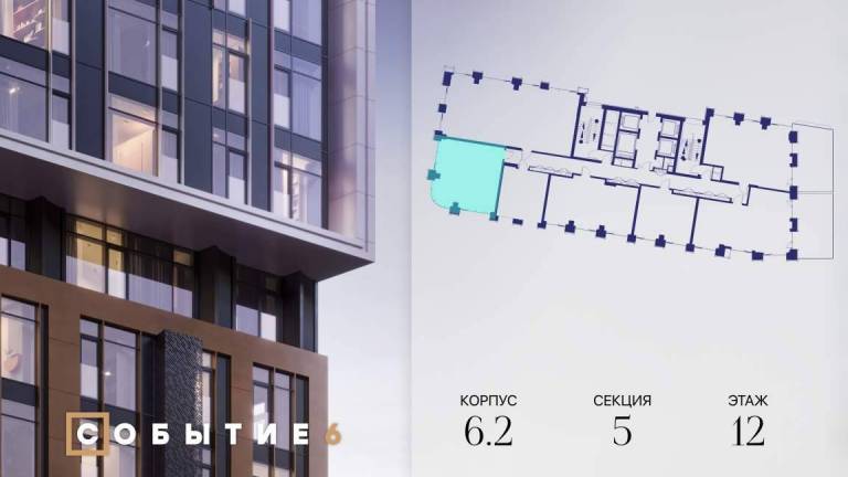 Продаётся 1-комнатная квартира от застройщика: общая площадь 51.80 м, жилая 17.10 м, кухня 25.70 м, 25-й этаж, жилой квартал «Событие-6», корпус 2 (секция 1...