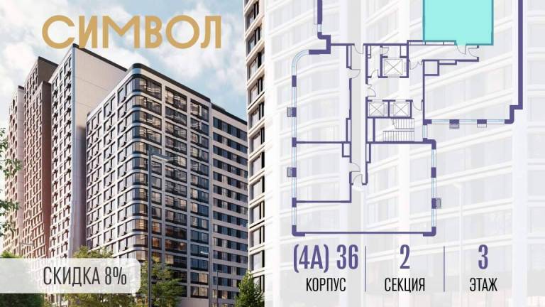 Продается 2-комнатная квартира от застройщика: общая площадь 63.50 м, жилая 29.40 м, кухня 17.00 м, 3-й этаж, жилой квартал «Гордость», корпус 36 (секция 3) .
