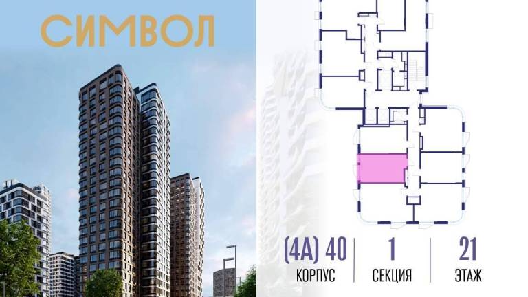 Продается 1-комнатная квартира от застройщика: общая площадь 41.20 м, жилая 16.20 м, кухня 15.60 м, 21-й этаж, жилой квартал «Гордость», корпус 40 (секция 1) .