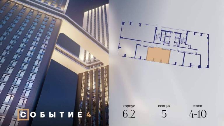 Продаётся 2-комнатная квартира от застройщика: общая площадь 62.20 м, жилая 32.60 м, кухня 17.80 м, 15-й этаж, жилой квартал «Событие-6», корпус 2 (секция 5...