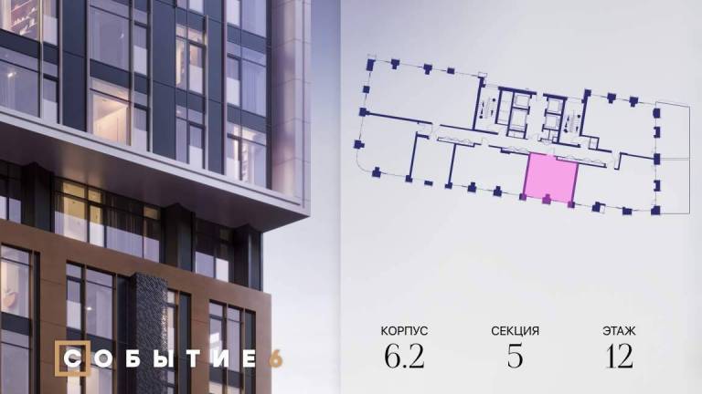 Продаётся 3-комнатная квартира от застройщика: общая площадь 77.10 м, жилая 41.90 м, кухня 17.70 м, 35-й этаж, жилой квартал «Событие-6», корпус 2 (секция 5...