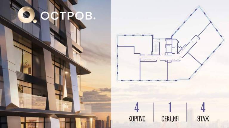 Продаётся 4-комн. квартира от застройщика: общая площадь 134.50 м, жилая 61.70 м, кухня 32.10 м, 14-й этаж, жилой квартал «Остров 12», корпус 3 (секция 1) .