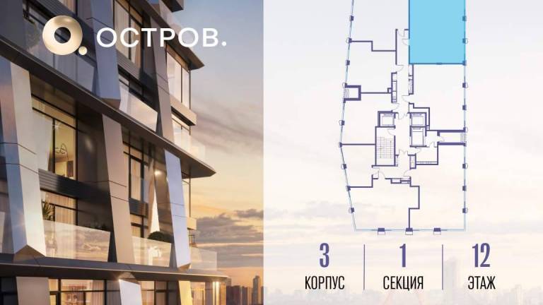 Продаётся 3-комн. квартира от застройщика: общая площадь 67.20 м, жилая 39.80 м, кухня 14.20 м, 19-й этаж, жилой квартал «Остров 12», корпус 3 (секция 1) .