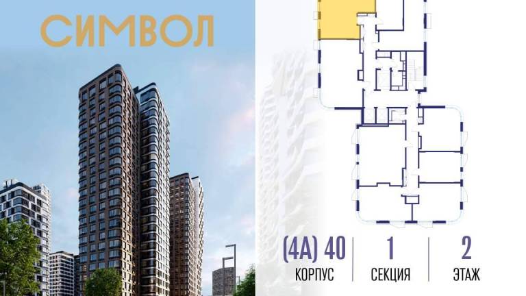 Продаётся 1-комнатная квартира от застройщика: общая площадь 38.80 м, жилая 14.90 м, кухня 16.00 м, 34-й этаж, жилой квартал «Событие-6», корпус 2 (секция 5...