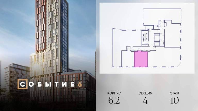 Продаётся 2-комнатная квартира от застройщика: общая площадь 64.30 м, жилая 26.30 м, кухня 20.60 м, 6-й этаж, жилой квартал «Событие-6», корпус 2 (секция 5...