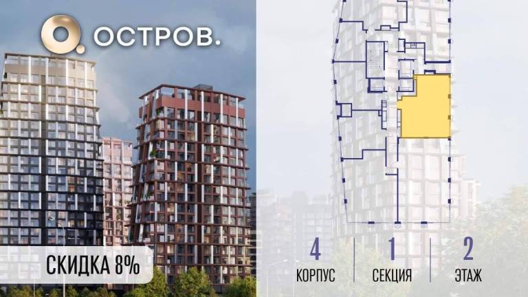 Фильтры1Продаётся 2-комн. квартира от застройщика: общая площадь 71.00 м, жилая 29.40 м, кухня 22.10 м, 2-й этаж, жилой квартал «Остров 14», корпус 4 (секция 1) . Срок...