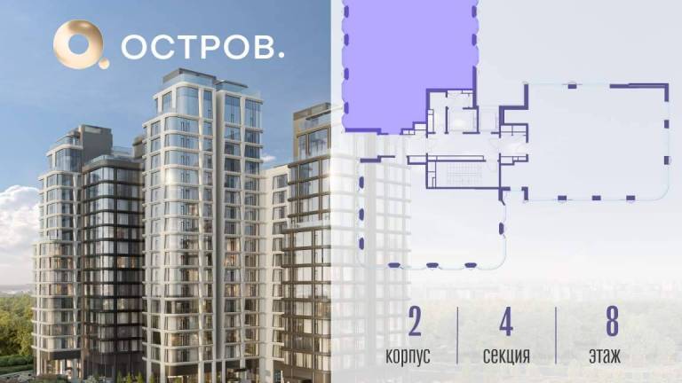 Продаётся 4-комн. квартира от застройщика: общая площадь 149.50 м, жилая 68.90 м, кухня 47.80 м, 9-й этаж, жилой квартал «Остров 12», корпус 2 (секция 1) .