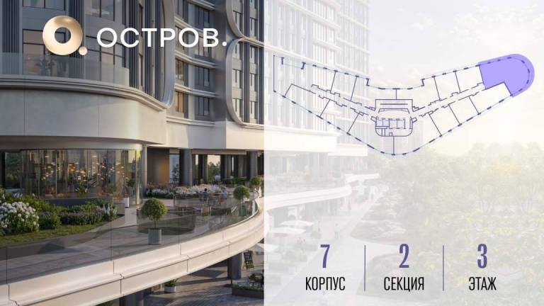 Продаётся 4-комн. квартира от застройщика: общая площадь 121.00 м, жилая 53.40 м, кухня 34.60 м, 14-й этаж, жилой квартал «Остров 7», корпус 7 (секция 2) .