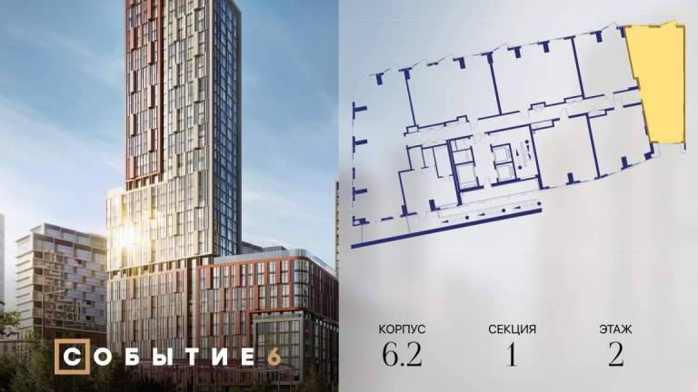Продаётся 3-комнатная квартира от застройщика: общая площадь 81.40 м, жилая 45.80 м, кухня 17.30 м, 22-й этаж, жилой квартал «Событие-6», корпус 2 (секция 5...